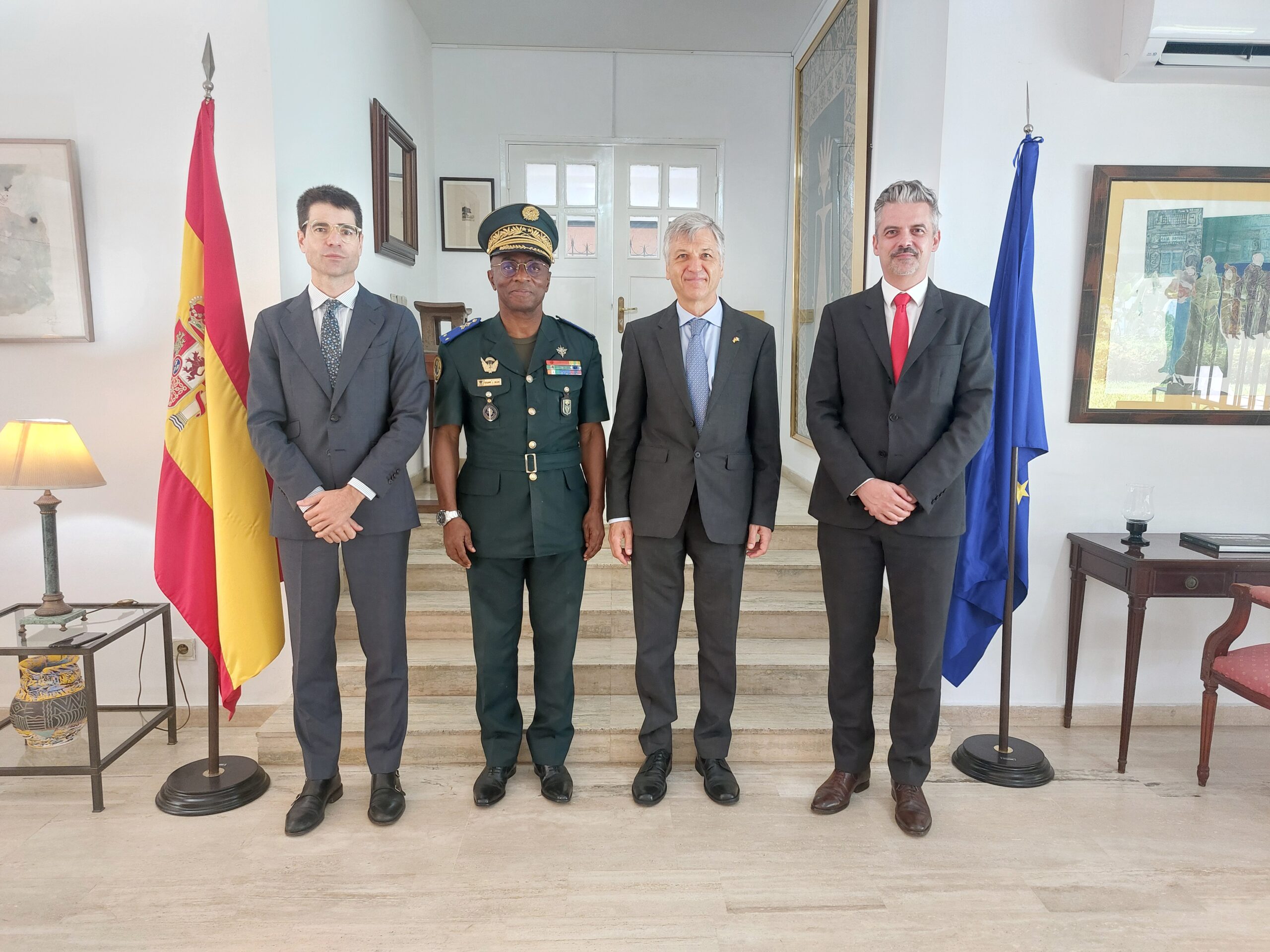 L’Ambassadeur d’Espagne en Côte d’Ivoire, S.E .M Guillermo Marín Gorbea, et le Directeur Général de l’Académie Internationale de Lutte contre le Terrorisme (AILCT), le Général de brigade Kouamé Joseph Allah, se sont réunis, accompagnés de leurs adjoints respectifs, afin de formaliser le renouvellement de la contribution espagnole à l’Académie.