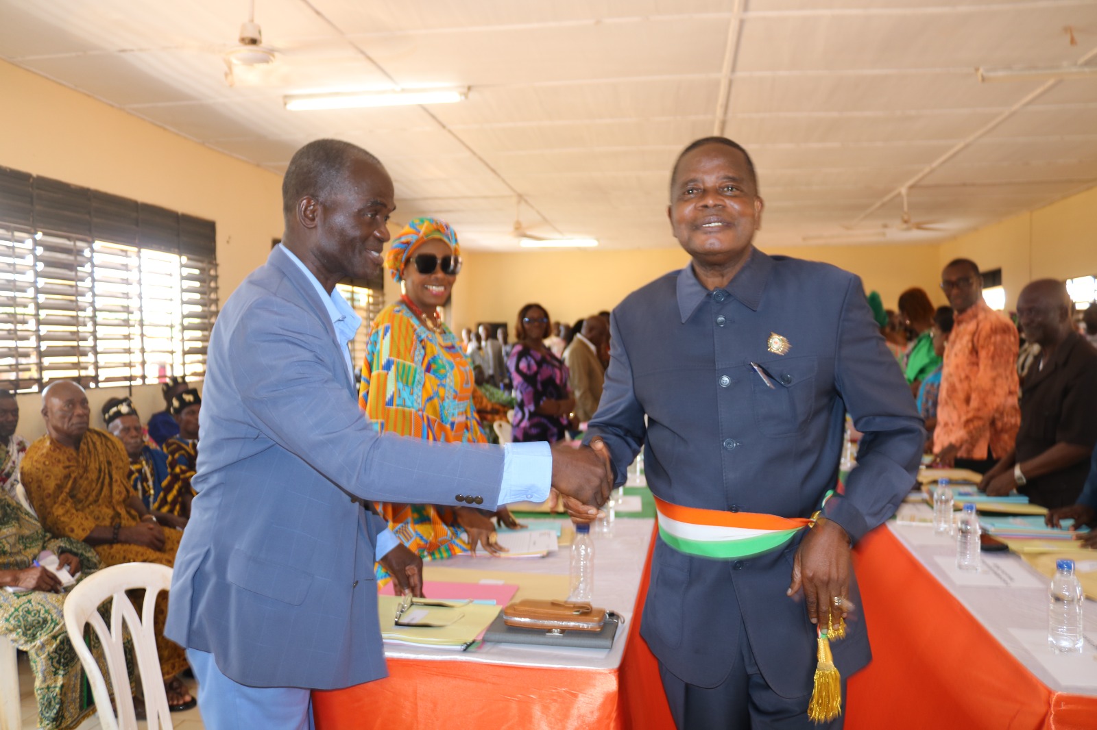 EN IMAGE LA CEREMONIE 𝐃’𝐈𝐍𝐓𝐑𝐎𝐍𝐈𝐒𝐀𝐓𝐈𝐎𝐍 𝐃𝐔 𝐂𝐇𝐄𝐅 𝐃𝐔 𝐕𝐈𝐋𝐋𝐀𝐆𝐄 𝐃𝐄 𝐁𝐎𝐔𝐃𝐎𝐔𝐊𝐎𝐔 (𝐃𝐈𝐕𝐎) EN PRESENCE DU 𝐃𝐫 𝐀𝐦é𝐝𝐞 𝐊𝐨𝐟𝐟𝐢 𝐊𝐎𝐔𝐀𝐊𝐎𝐔, 𝐏𝐫é𝐬𝐢𝐝𝐞𝐧𝐭 𝐝𝐮 𝐂𝐨𝐧𝐬𝐞𝐢𝐥 𝐑é𝐠𝐢𝐨𝐧𝐚𝐥 𝐝𝐮 𝐋O𝐡-𝐃𝐣𝐢𝐛𝐨𝐮𝐚