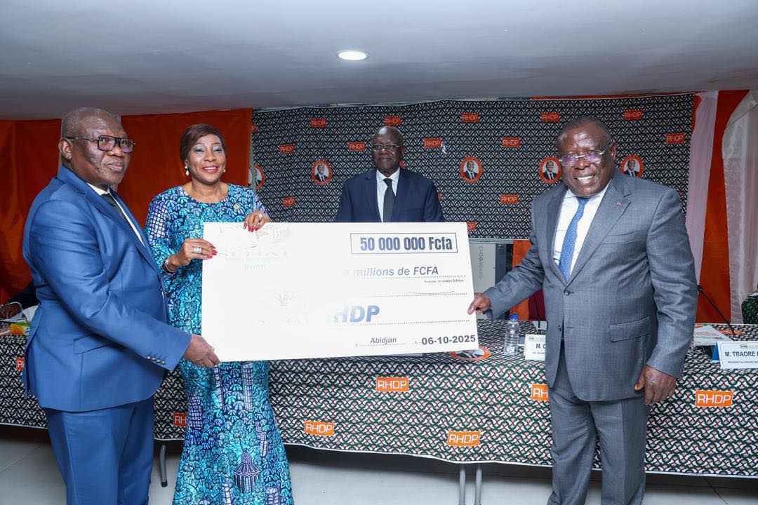 La Direction nationale de campagne du Rassemblement des houphouétistes pour la démocratie et la paix (RHDP) a reçu, lundi 6 octobre 2025, au siège du parti à Cocody Rue Lepic, le soutien financier des sénateurs RHDP et des membres de la Chambre consultative.