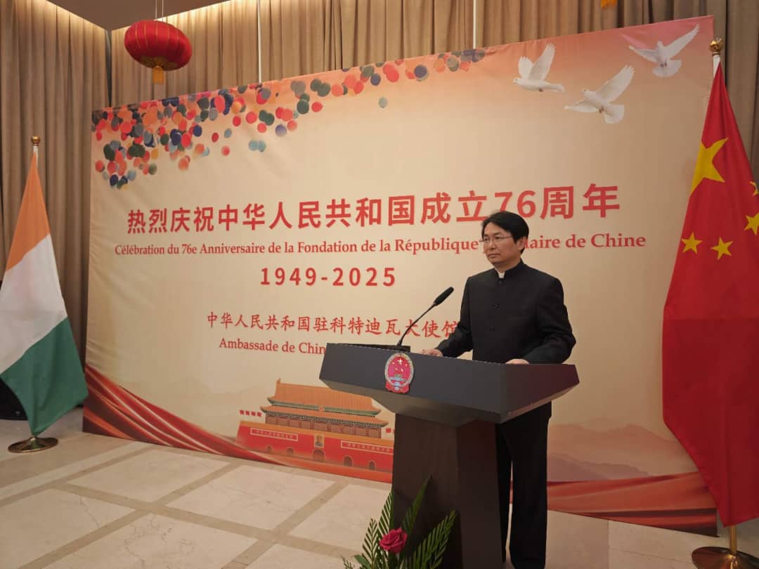 Le diplomate a affiché sa satisfaction lors de la celebration du 76è anniversaire de la fête nationale de la Chine organisée le 30 septembre 2025 au sein de l’ambassade située à Cocody-M’Badon. A ses yeux, la cooperation économique entre les deux pays produit des “résultats tangibles” depuis l’établissement des relations diplomatiques en mai 1983. “Selon des statistiques préliminaires des douanes chinoises, jusqu’en juillet 2025, le volume des échanges bilatéraux de cette année a dépassé 4 milliards de dollars américains. La Chine a des chances de devenir pour la huitième année consécutivele plus grand partenaire commercial bilatéral de la Côte d’Ivoire depuis sept années consécutives », a revelé l’ambassadeur chinois. Puis d’ajouter : « Des projets majeurs tels que le barrage hydroélectrique de Gribo-Popoli, l’échangeur du carrefour Akwaba, l’usine de transformation du cacao et sept écoles de formation professionnelle ont été successivement achevés au cours de l’année. La participation de la Chine en tant que pays à l’honneur au Salon de l’Agriculture et des Ressources Animales (SARA) constitue une concrétisation des fruits de la coopération agricole entre les deux pays ».Au plan politique, « la confiance mutuelle » entre les deux pays s’est « appronfondie » grâce aux visites au cours desquelles les « hauts responsables des deux pays sont parvenus à un consensus sur l’approfondissement des relations bilatérales ».