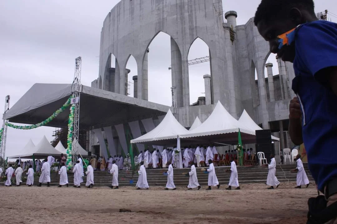 Cet édifice religieux en construction, situé à l’entrée de la ville de Grand Bassam est une conception et réalisation du Cabinet AKA SEHR Architecte. il devrait accueillir 3500 personnes à sa finition.