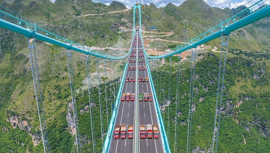 Qui veut voir les ponts suspendus les plus hauts du monde, se rend en chine. Le génie chinois en matière de ponts en hateur semble ne pas avoir de limite tant les ingenieurs rivalisent de prouesses technologiques qui n’ont pas fini d’étonner les experts les plus avertis du monde entier. Le dernier né de ces ouvrages d’art en suspension, le pont du Grand Canyon de Huajiang, inauguré le 28 septembre 2025 dans la province de Guizhou, culmine à une hauteur impressionnante de 625 mètres au-dessus d’une gorge.