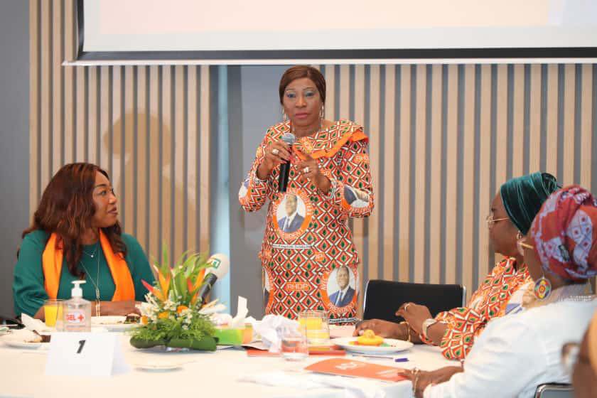 Organisé à l’initiative de Minafou Fanta Koné Coulibaly, Expert Financier, le déjeuner-débat, placé sous la présidence de Kandia Camara, présidente du Sénat et directrice nationale adjointe de campagne chargée des femmes, avait pour thème : « Femmes de la finance, actrices d’une Côte d’Ivoire ambitieuse et solidaire ».