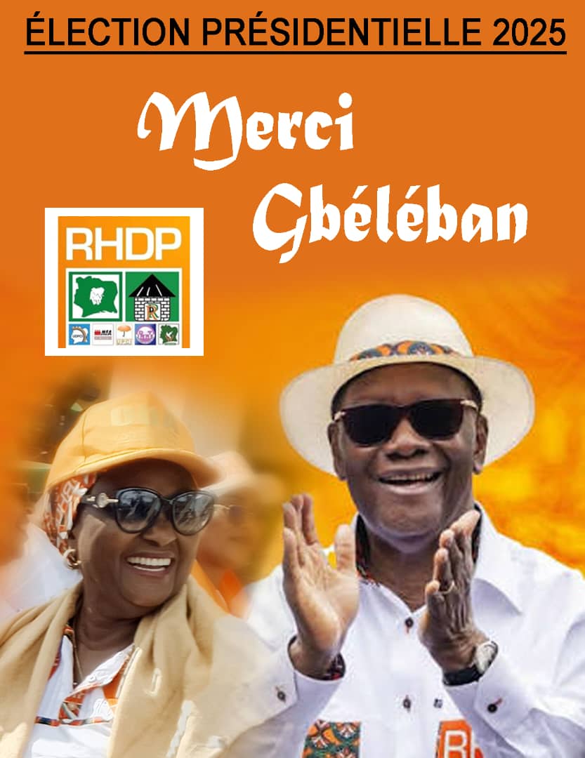 Vous l’aviez promis, vous l’avez fait !Avec un score historique de 99,90 % des voix en faveur du Président dans notre département, Gbéléban s’est une fois de plus illustré comme premier sur le plan national et un bastion solide du RHDP et de la paix. Ce résultat vient renforcer la brillante réélection du Président Alassane OUATTARA, plébiscité au premier tour avec 89,77 % des suffrages au plan national.