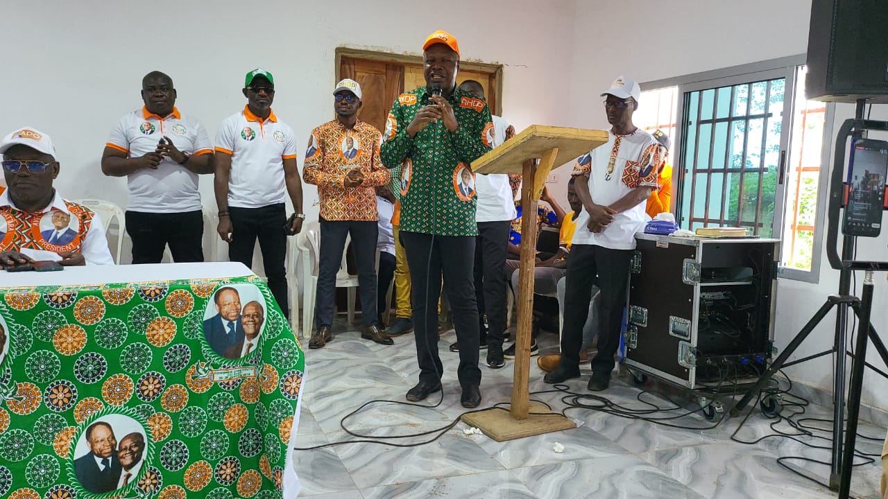 À De Gohitafla à Sinfra, jeunes, femmes et chefs traditionnels ainsi que les élus locaux ont réservé un accueil chaleureux à la délégation du Directeur national adjoint de campagne en charge des régions Marahoué–Sassandra, Mabri Toikeusse, venu réitérer le même appel à l’unité et à la victoire, mais surtout une participation massive des populations. Il a insisté sur la nécessité d’un vote massif et discipliné en faveur du président Alassane Ouattara.
