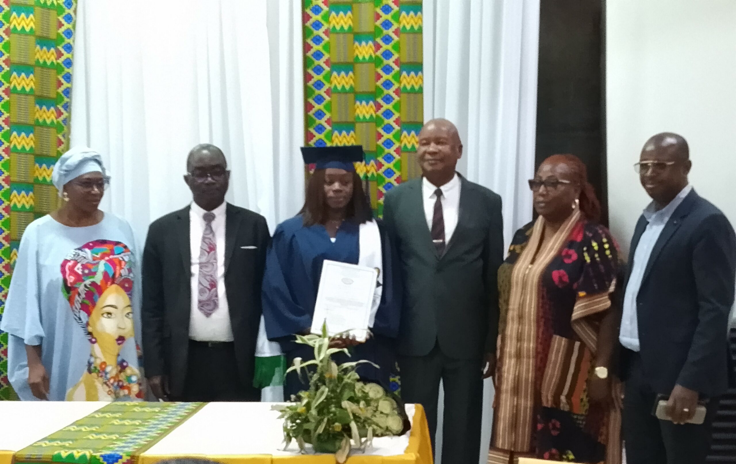 Elle a obtenu la mention honorable avec une note de 18/20. Son mémoire a porté sur le thème : « Quel profil de carrière incitatif pour les infirmiers, infirmières, sages-femmes et maïeuticiens diplômés d’Etat de Côte d’Ivoire : Etudes réalisées au Chu de Yopougon».